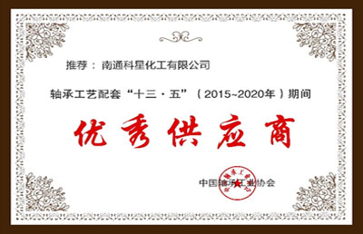 2020年12月8日,中國(guó)軸承工業(yè)協(xié)會(huì)第九屆會(huì)員大會(huì)在上海召開(kāi),南通科星化工有限公司喜獲中國(guó)軸承工業(yè)協(xié)會(huì)授予的“工藝配套優(yōu)秀供應(yīng)商”稱(chēng)號(hào)。
