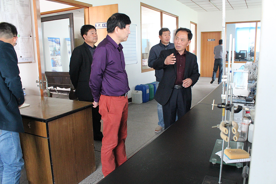 科星化工董事長吳龍鐵在化驗(yàn)室向來賓講解產(chǎn)品檢測過程、介紹產(chǎn)品研發(fā)工藝。