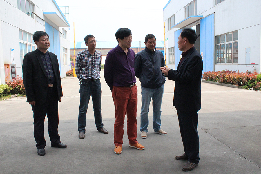 董事長吳龍鐵帶領(lǐng)中弘軸承(江蘇)股份有限公司領(lǐng)導(dǎo)參觀廠區(qū)。