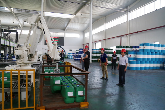 董事長吳龍鐵,副總經(jīng)理吳昌祥(左一)給許總經(jīng)理,采購部總經(jīng)理王科軍(右一)一行詳細(xì)介紹了,我司的領(lǐng)先行業(yè)的研發(fā)檢測設(shè)備:扭矩攻絲機(jī),四球磨損實(shí)驗(yàn)機(jī),鹽霧腐蝕試驗(yàn)機(jī),超聲波清洗機(jī),恒溫恒濕試驗(yàn)箱,多參數(shù)水質(zhì)測定機(jī)等檢測分析的研究器械,這些設(shè)備可覆蓋公司所有產(chǎn)品的檢測分析,為實(shí)現(xiàn)優(yōu)質(zhì)產(chǎn)品提供強(qiáng)有力的保證!