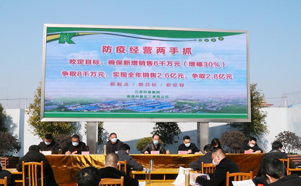 “咬定目標(biāo),確保新增銷(xiāo)售6千萬(wàn)元(增幅30%),爭(zhēng)取8千萬(wàn)元,實(shí)現(xiàn)全年銷(xiāo)售2.6億元,爭(zhēng)取2.8億元。一年的企業(yè)靠運(yùn)氣、十年的企業(yè)靠產(chǎn)品、百年的企業(yè)靠文化??菩敲课粏T工要肩上都有擔(dān)子,心里有動(dòng)力,前進(jìn)有方向。才能打硬仗、打苦仗、打勝仗。希望科星人拿出壯士斷腕的勇氣實(shí)現(xiàn)全年目標(biāo)任務(wù)”這是南通科星化工總經(jīng)理在2020年2月20日下午公司召開(kāi)的動(dòng)員大會(huì)的講話。