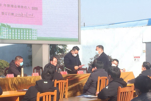 區(qū)域銷(xiāo)售經(jīng)理們分別上臺(tái)向銷(xiāo)售總監(jiān)吳昌祥遞交2020年目標(biāo)責(zé)任狀。