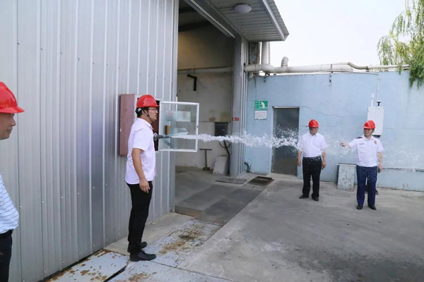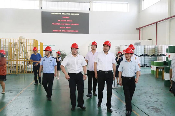 2020年9月7日,海安市委常委、副市長盧忠平帶隊,對科星化工生產(chǎn)廠區(qū)開展安全工作檢查。每到一處,消防、環(huán)保等領(lǐng)域?qū)<艺J(rèn)真仔細(xì)檢查,詳細(xì)了解消防安全、原料儲存安全等情況??菩腔ざ麻L吳龍鐵全程陪同,并匯報了安全及環(huán)保各項工作情況。
