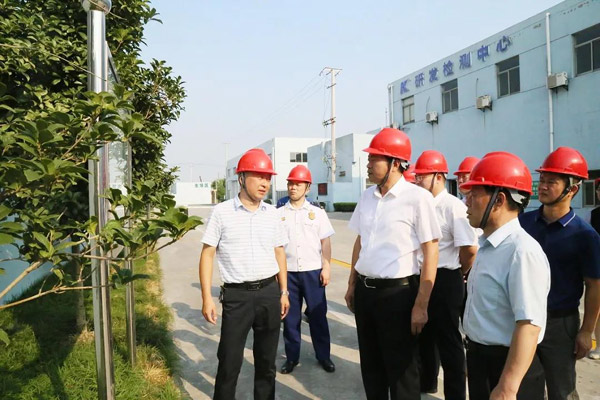 海安市市委常、副市長 盧忠平(中)在白甸鎮(zhèn)黨委書記秦廣榮(左)和南通科星化工有限公司董事長吳龍鐵(右)帶領(lǐng)下現(xiàn)場檢查指導(dǎo)