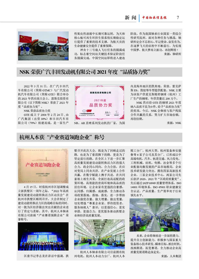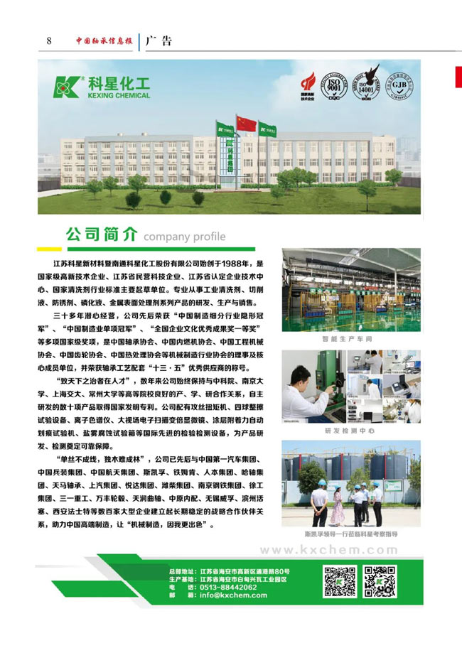 中國(guó)軸承信息報(bào)2022年第4期節(jié)選轉(zhuǎn)載,科星化工詳見(jiàn)第八頁(yè)。