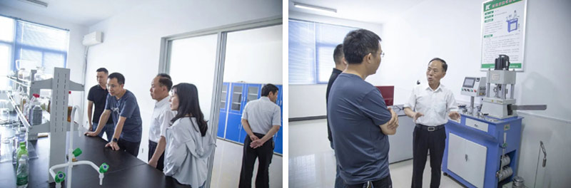 美的集團(tuán)考察組首先來到位于江蘇省級高新區(qū)(海安)江蘇科星新材料暨南通科星化工股份有限公司總部,董事長吳龍鐵陪同考察組參觀科星研發(fā)中心,詳細(xì)介紹了研發(fā)中心各類儀器設(shè)備的功能應(yīng)用情況,考察組對科星的研發(fā)技術(shù)力量給予高度肯定。