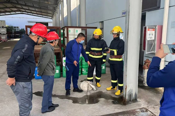 2022年10月12日,海安市消防大隊墩頭中隊蒞臨南通科星化工股份有限公司開展消防安全檢查及現(xiàn)場演習(xí)檢驗指導(dǎo),科星副總經(jīng)理劉小燕、安全總監(jiān)劉元才接待,科星微型消防站全體成員參與演習(xí)。