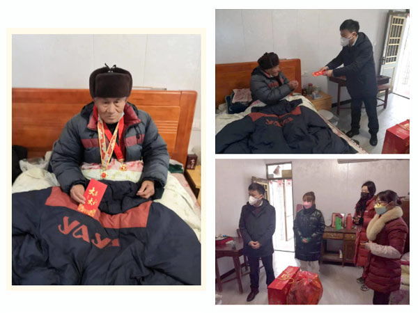 新春將至、歲寒情深。為表達(dá)對(duì)革命老兵的敬意之情,2023年1月9日,南通科星化工股份有限公司執(zhí)行總裁吳曉強(qiáng)帶領(lǐng)公司副總經(jīng)理劉小燕、工會(huì)委員邰俊華、汪小麗專程來(lái)到墩頭鎮(zhèn)曹莊村8組革命傷殘軍人顏夕林家中,向這位革命老兵送上慰問(wèn)金和慰問(wèn)品,同時(shí)致以新年的祝福和問(wèn)候。