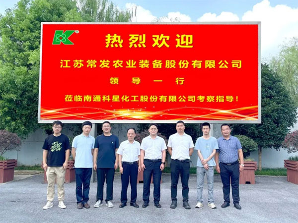 2023年8月9日江蘇常發(fā)農(nóng)業(yè)裝備股份有限公司領(lǐng)導(dǎo)一行親臨南通科星化工股份有限公司考察調(diào)研,科星董事長吳龍鐵、執(zhí)行總裁吳曉強(qiáng)、銷售副總吳昌祥參與接待。