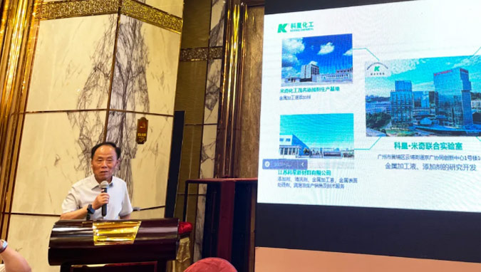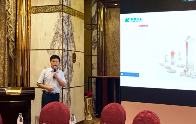 會議現(xiàn)場,廣州米奇化工有限公司總經(jīng)理、科星•米奇聯(lián)合實驗室主任李少林親自主講,帶來了題為《國際、國內(nèi)行業(yè)勢分析及給科星帶來的發(fā)展新機(jī)遇》的專業(yè)報告,現(xiàn)場掌聲連連。