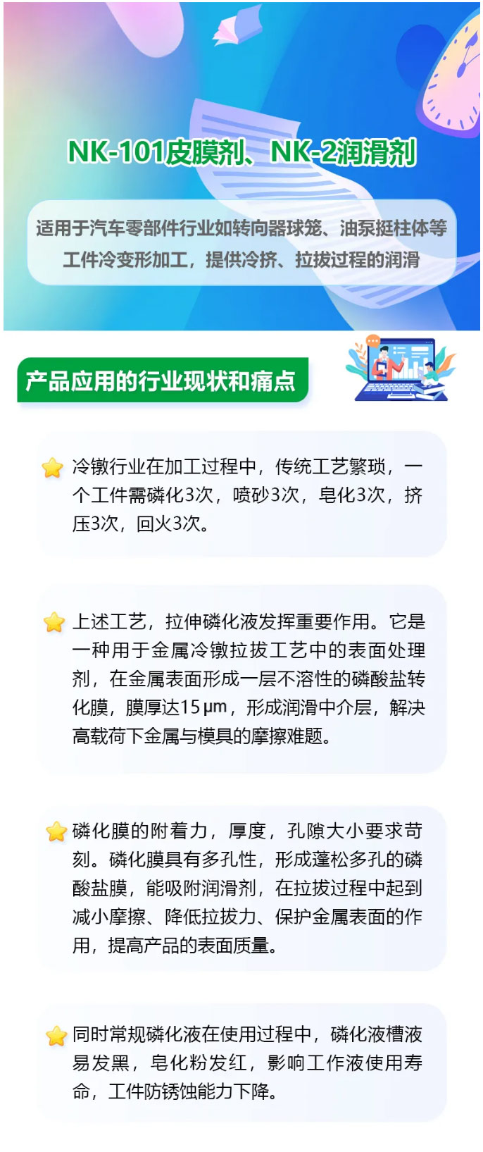 高潤滑又堅固/耐極壓又穩(wěn)定/南通科星NK-101皮膜劑、NK-2潤滑劑組合產(chǎn)品解決冷變形加工所需