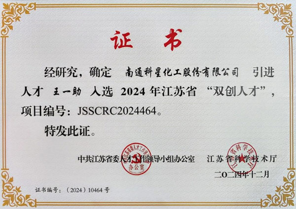 【喜報(bào)】南通科星王一助總工程師入選江蘇省“雙創(chuàng)人才”!