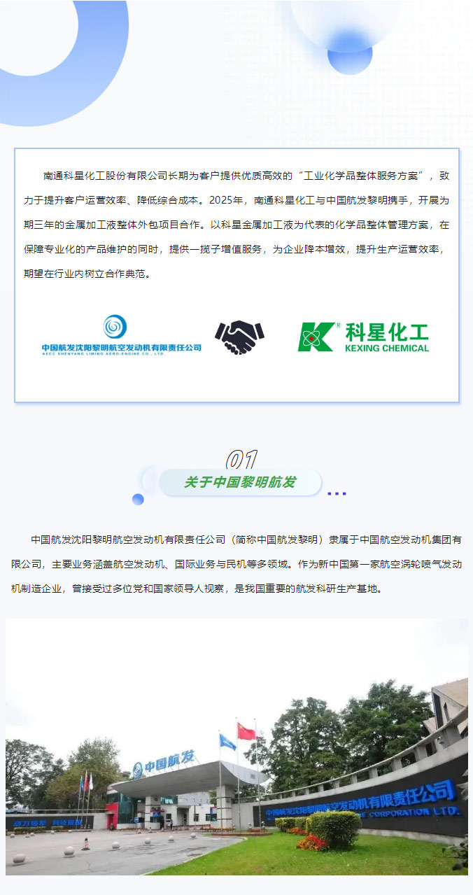 南通科星與中國航發(fā)黎明開展為期三年的切削液整體外包項目合作