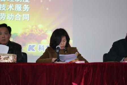 財務(wù)總監(jiān)吳桂紅宣讀了公司各項制度:《公司勞動管理制度》、《財務(wù)管理制度》、《銷售技術(shù)服管理制度》。