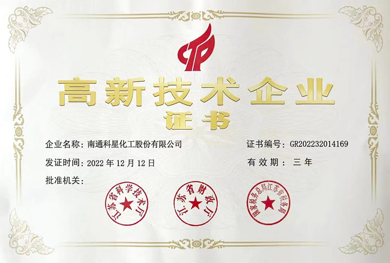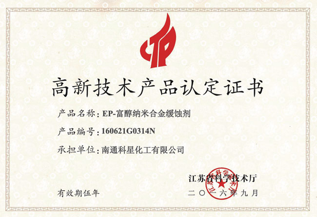高新技術產品認定證書-EP-富醇納米合金緩蝕劑