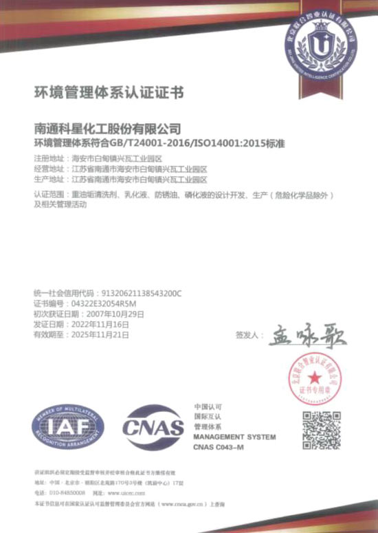 環(huán)境管理體系認證證書