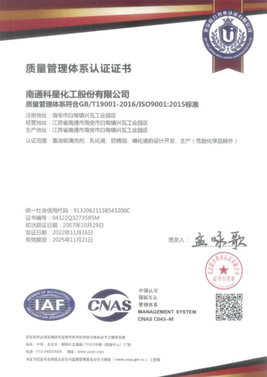 質量管理體系認證證書
