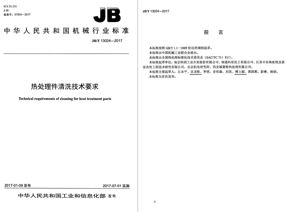 熱處理件清洗行業(yè)標準